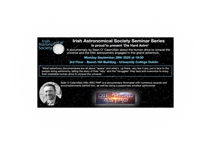 Talks are held at our regular venue, Beech Hill, UCD, Dublin (Eircode: D04 P7W1), and are presented by both amateur and professional astronomers.